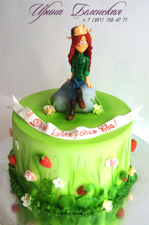 это Венди из Гравити фолз) Торт отличный вышел) Хотя для ее персонажа немного странно смотрятся цветочки и ягодки)