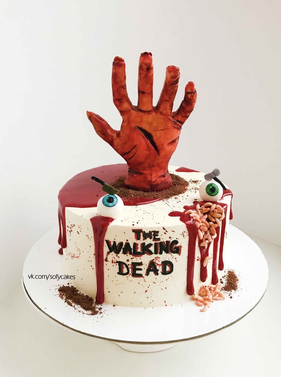 Украшение тортов кремом,шоколадом, фруктамиДля девушки, большой фанатки фильма "Ходячие мертвецы"