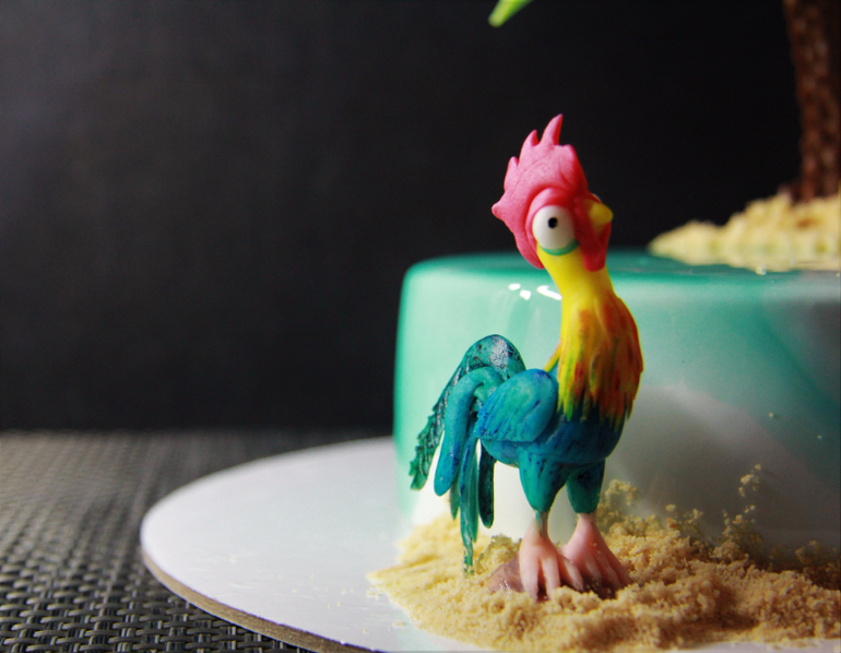 С таким удовольствием я делала этот тортик! Поначалу собиралась я Моану на пряник сделать. Но потом поняла, что пряник будет очень утяжелять композицию и оставила ее так) Моана плоская))) Петух из мастики, пальмы шоколадные. Внутри карамель-мокко. Фото получились плохие(((( Все таки такие торты надо при дневном свете фотографировать...