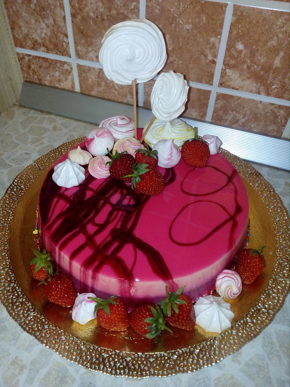 нет,поэтому смотрела на глаз.Глазурь по бокам стекла.Первый раз сойдет.Торт два шоколада и малиновое конфи,для дочки на окончание первого класса.