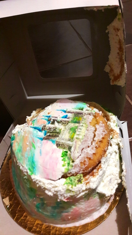 Вот это произошло где-то в 12ночи. Новый торт забрали в 9.30.