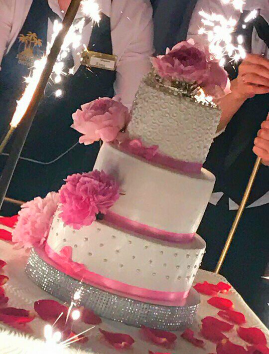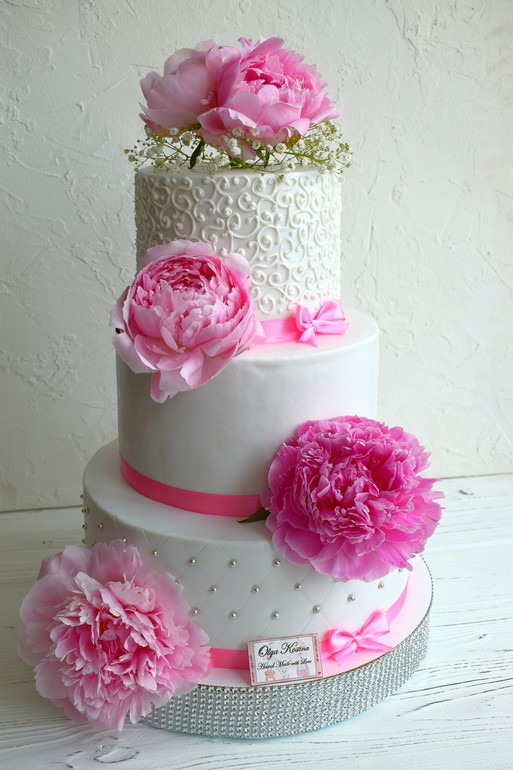 Торты свадебныеНежный, белоснежный, с розовыми живыми пионами и жемчугом и с тремя разными начинками..🎉🎂