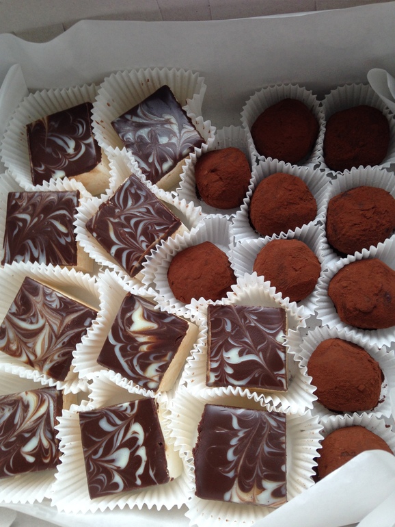Еще можно птичье молоко (без основы) залить в квадратную (прямоугольную форму), сверху ганаш и порезать на квадратики.