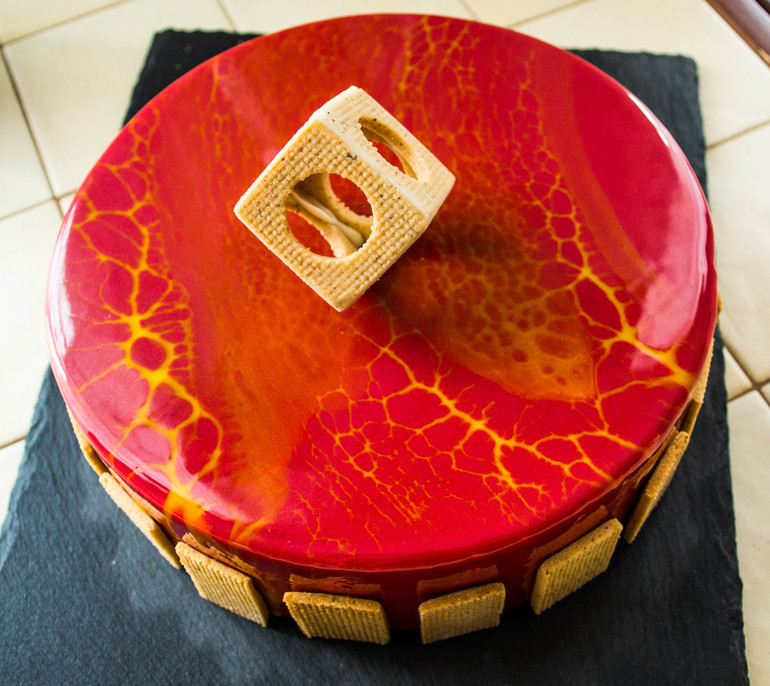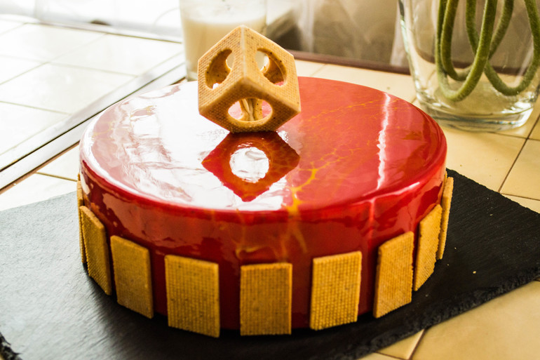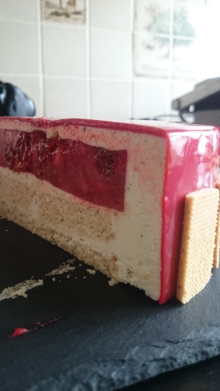 А вот этот толстый красный слой это клубничное конфи? Не толстоват?
