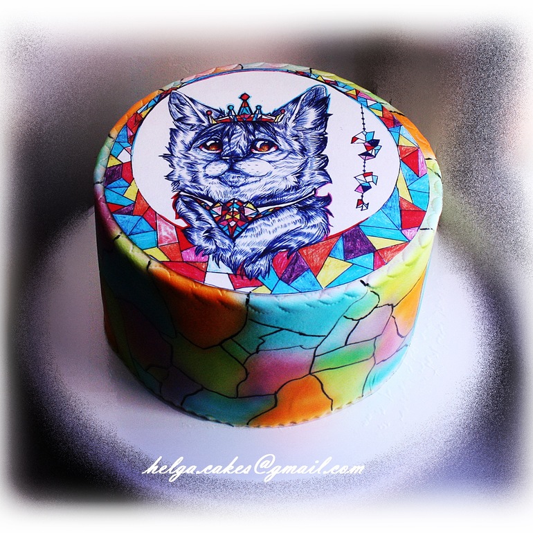 Кота она рисовала сама, после чего рисунок мы сканировали и отправили на сахарную печать. Лена, спасибо тебе! Всегда оперативно выручаешь)