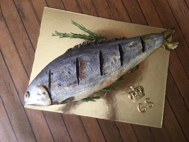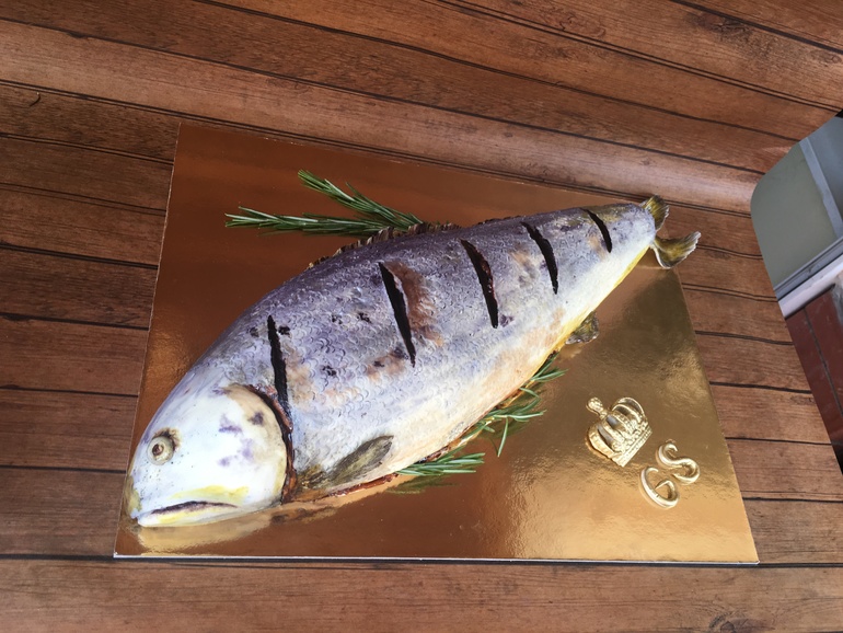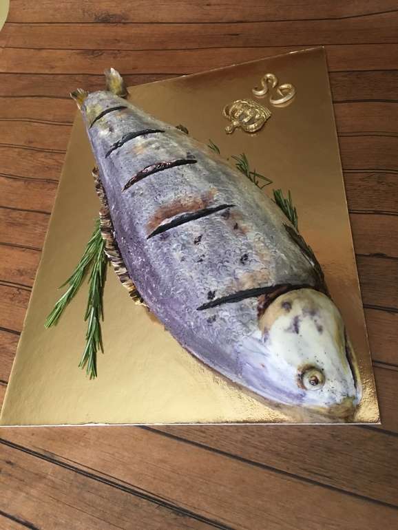 Все больше и больше начинаю кайфовать от тортов без мастики ) это же ещё сложнее и интереснее, торт покрыт шоколадом только плавники и глаз мастика .