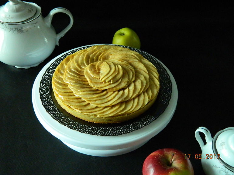 Это еще один случай, когда совершенно простые на первый взгляд вещи приводят вас в полнейший вкусовой экстаз) Нежнейший тарт, просто нежнейший. А фламбированые кальвадосом или ромом яблочки получают изумительную, едва уловимую, вкусовую нотку. Я его слопала фактически в одиночку))