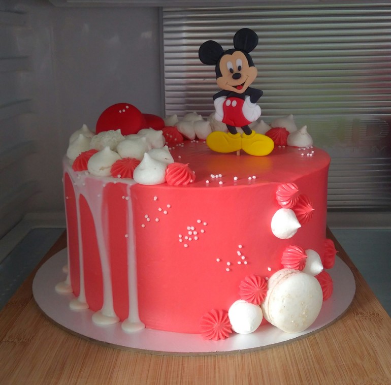 Украшение тортов кремом,шоколадом, фруктамиОн обожает МиккиМауса. Таскает его везде. Конечно же дизайн торта был предопределен. А у меня выдался повод поэкспериментировать: с глазурью, с покрытием, с техникой выравнивания и т.д