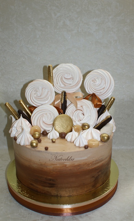 Украшение тортов кремом,шоколадом, фруктамиВанильные бисквиты с пломбирным кремом, хрустящим безе, покрытым 2-мя видами домашней карамели.
