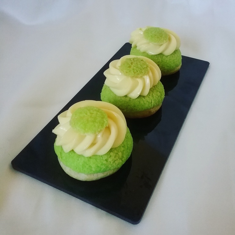 Внутри классический заварной крем и легкий экзотический крем лайм-маракуйя.