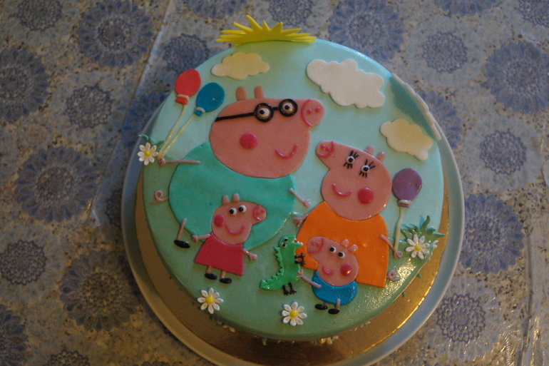 Тортик с Пепой кстати больше всего мне понравился. И еще обратите внимание на фон для съемки. Эта голубая скатерть не красит фото. Например просто белый ватман использовать можно как фотофон.