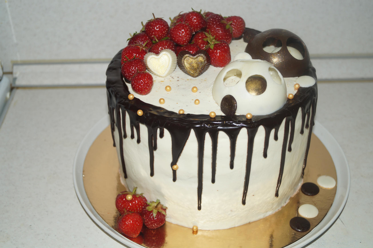 выравнивание, высота тортов, покрытие со складками - это основное, над чем надо работать усиленно. еще вы очень увлекаетесь кандурином и смазыванием тортов водкой (или почему они так блестят??) - не нужно этого. и что-то у вас не то с рецептом крема: то явно сильно масляный, то какой-то перебитый, не гладкий... попробуйте покорить меренгу - она гораздо белее ваших кремов, ну, и сырный по Энди тоже (для белого цвета масло взбивать сначала нужно с пудрой добела, потом вводить сыр, ну, или диоксид титана добавить)