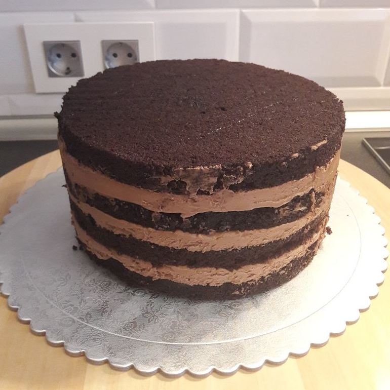 шоколадный бисквит, шоколадный кремчиз и пьянющая вишня)