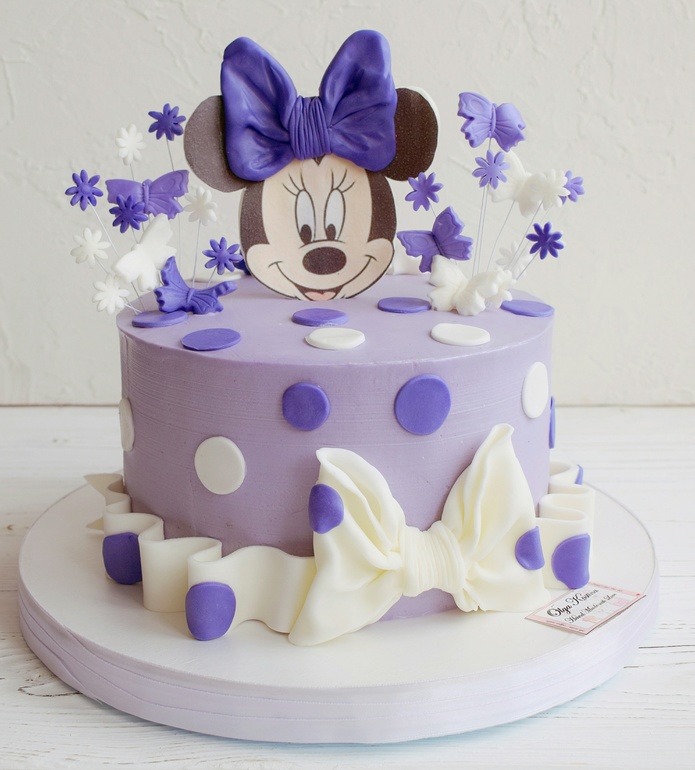 Покрытие кремовое, декор из мастики и сахарной печати.