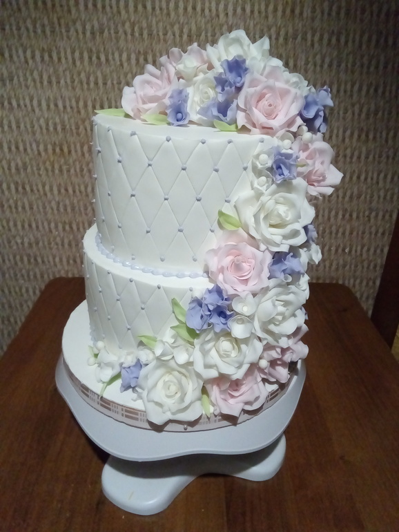 Торты свадебныеНе очень довольна тортиком, так как не угадала с соотношением ярусов. Сорри за качество фото, делала на бегу))) Под катом небольшой МК мелких цветочков, может новичкам пригодится)))