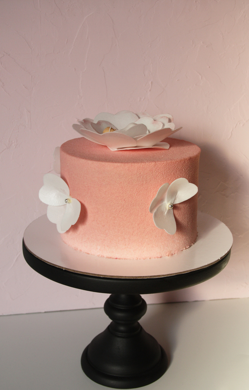 Украшен вафельными цветами , а сверху сладко спит малышка