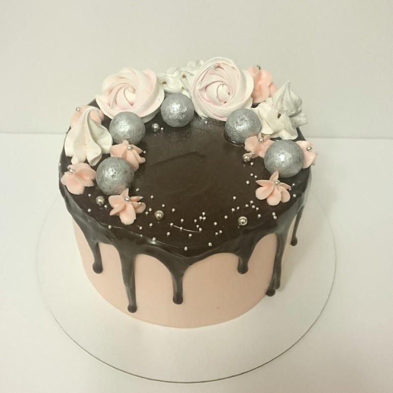 Украшение тортов кремом,шоколадом, фруктамиШоколадный сникерс внутри, шоколад и безе с конфетами снаружи