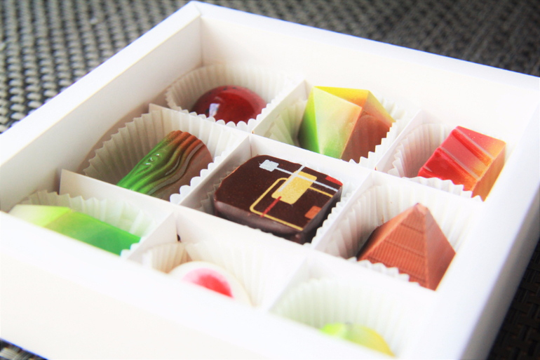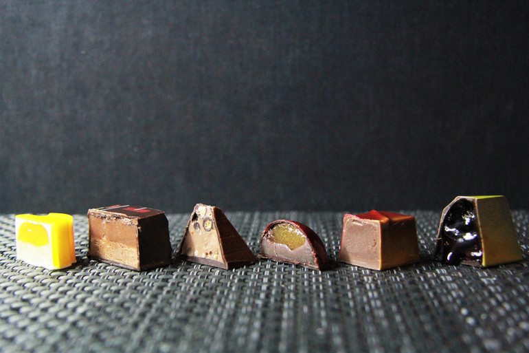 Начинки: кокос-маракуйя, кофе-бейлиз, персик-ежевика-лаванда, черная смородина-бальзамик, пралине с хрустящими шариками, хрустящий юзу.