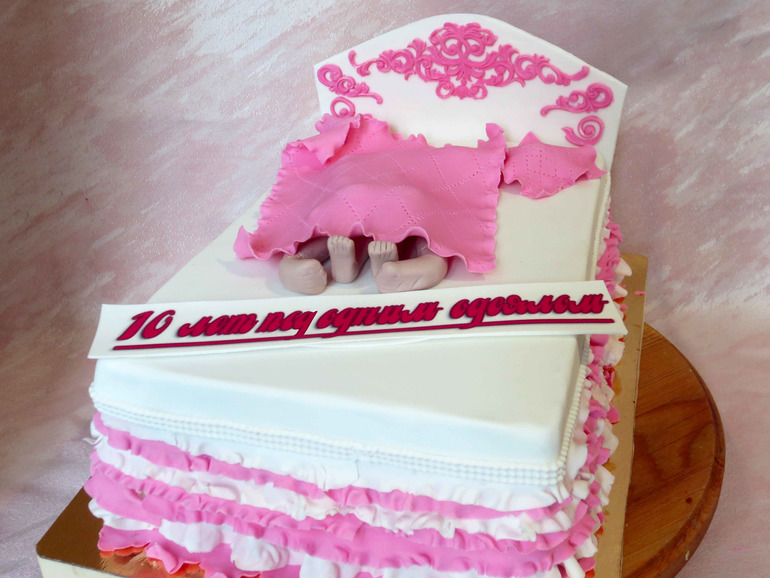Не обижайтесь..ну как то совсем не очень.. большая кровать,на ней под "конфетным фантиком",какого то неестественного цвета ..просто ноги,если их конечно ногами можно назвать..забавно представить,что увидели клиенты,сняв этот кусочек мастики.....ну если так не хотелось лепить,то хотя бы ноги и одеяло нормального размера нужно было сделать..вы же не так выглядите на кровати...а так получилось,между подушек лежат одни ноги..и ффсе..