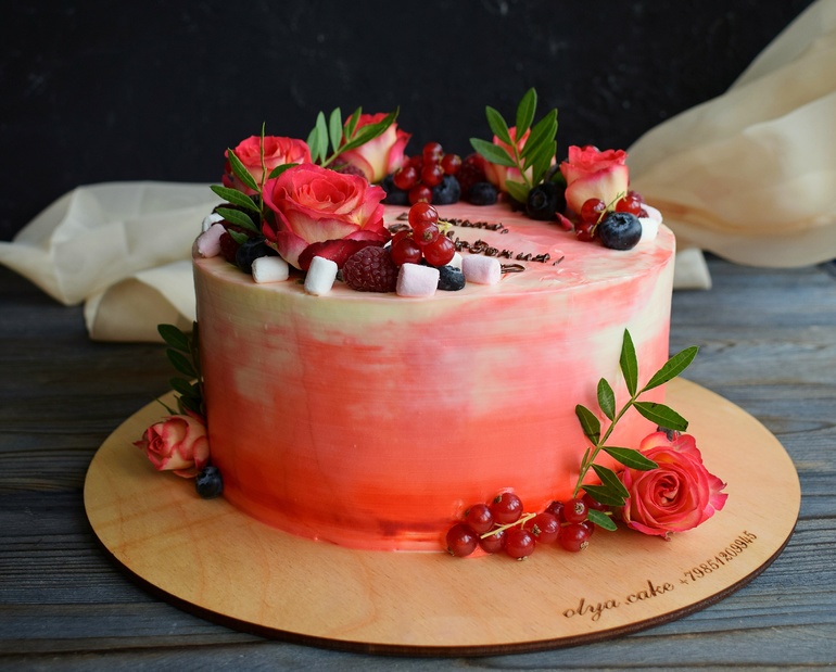 Украшение тортов кремом,шоколадом, фруктамиСупер-срочный тортик для моей тёзки, ❤Оленьки.