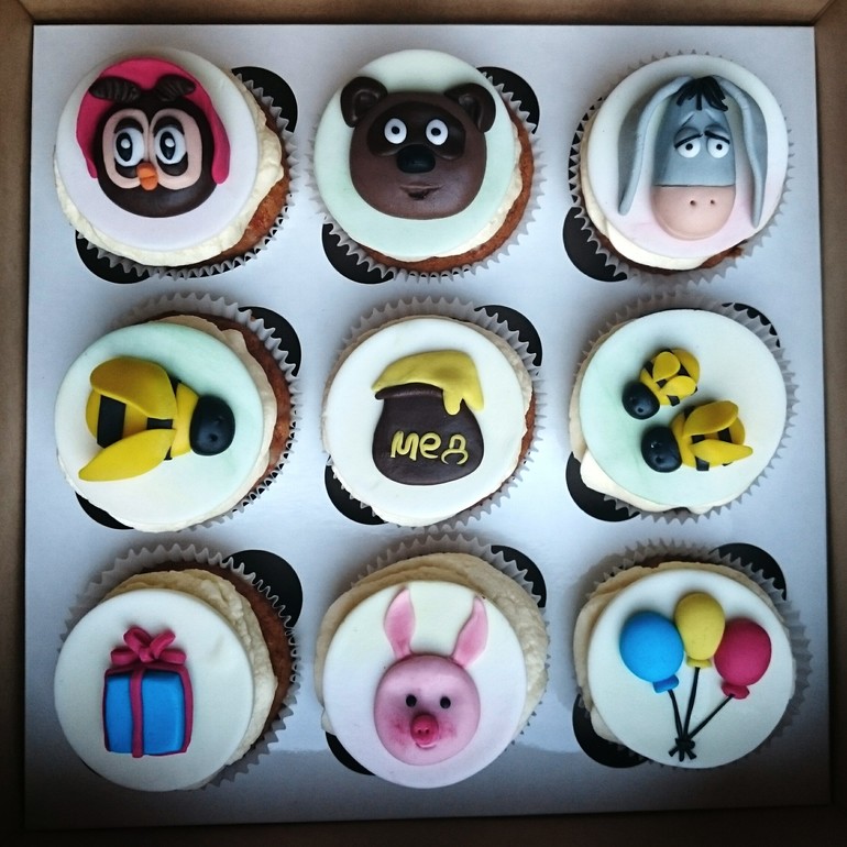 Набор морковных капкейков с декором в тему винни пуха. Фото хоть и делала с утра, но все равно уже со светом проблема.