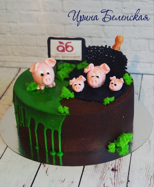 Торты корпоративныеВторой год подряд делаю торт для одной компании ко дню сельского работника и мясоперерабатывающей промышленности . В этом году заказ был сделан за сутки до отдачи . Особо времени на раздумья не было все что в голову первое пришло то и сделала )))))