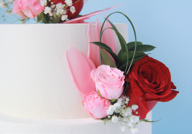 Покажу вам редкого для меня гостя) Свадебный торт))) Не заказывают их у меня. Я не против, собственно, не комфортно мне делать большие торты. Этот в моем формате) Всего 4 кг. Внутри шоколадные коржи и 2 вида мусса: клубничный и кремчиз. Покрыт велюром.