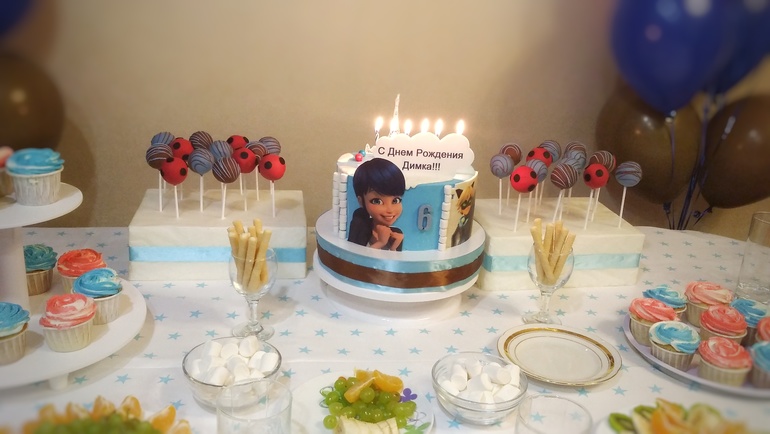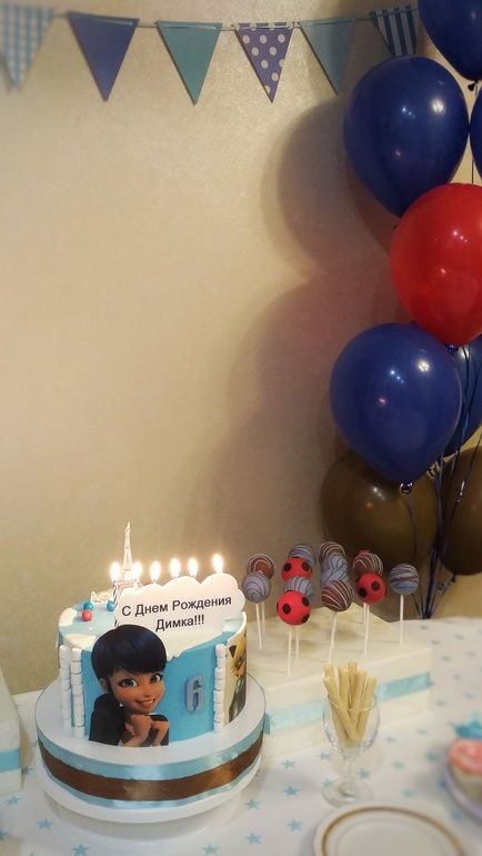 Вчера у сына было день рождения🎊🎈🎂 Он очень увлекся мультиком леди баг, но делать красную в горошек банальность не захотелось (как-то больше на девчачий похоже🙈)..решила сделать голубой, в цвете неба в Париже, прогуляться по его улочкам и как бы случайно за углом встретить Маринет и супер кота, которые его и поздравят))) небольшие накладки с фотопечатью исправлять тоже не чем было..фото хороших нет.... вообщем, праздник удался😂😂😂🎂🎊🎈