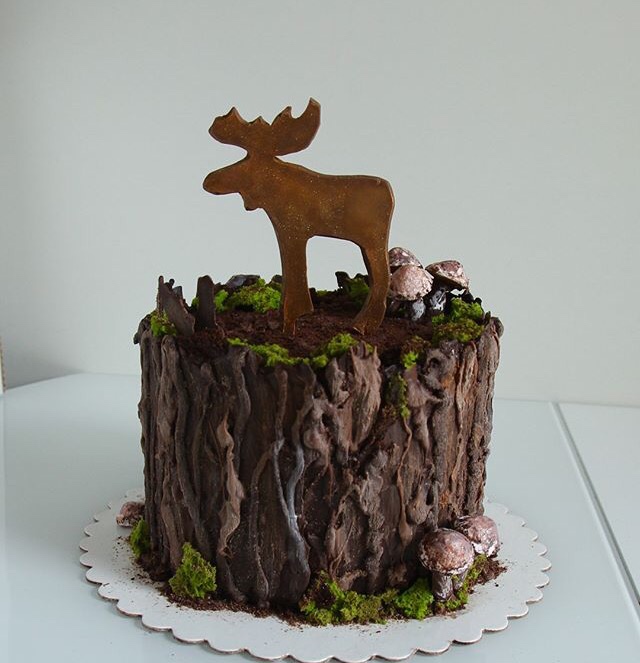 Украшение тортов кремом,шоколадом, фруктамиДавно я хотела пень сделать , не было повода.Торт нужен был для охотника , поэтому тут ещё и лось ))) но мне очень хотелось сделать именно пень )) поэтому лось как приложение к торту , я так решила ))))