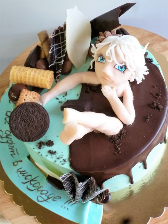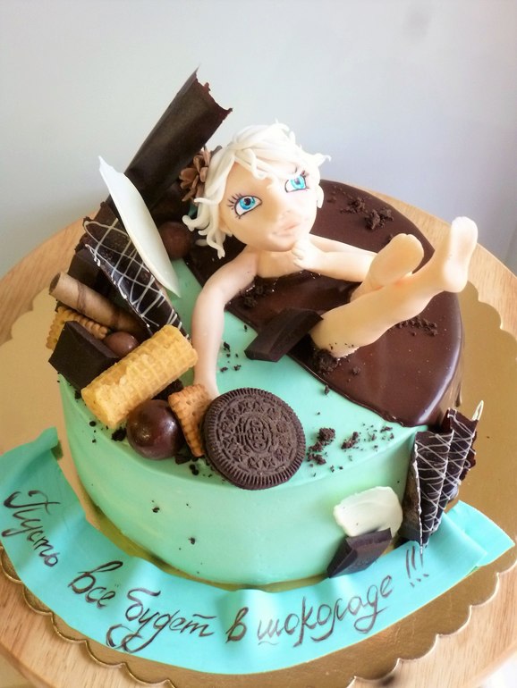 "Пусть все будет в шоколаде". Шоколадно-шифоновый бисквит и апельсиновый крем. Фото именинницы под кат.