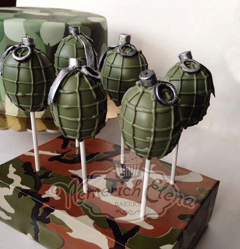 Капкейки и КейкпопсыВот такие делала недавно кейкпопсы. Торт тыл обычный, комуфляж, без украшений.
