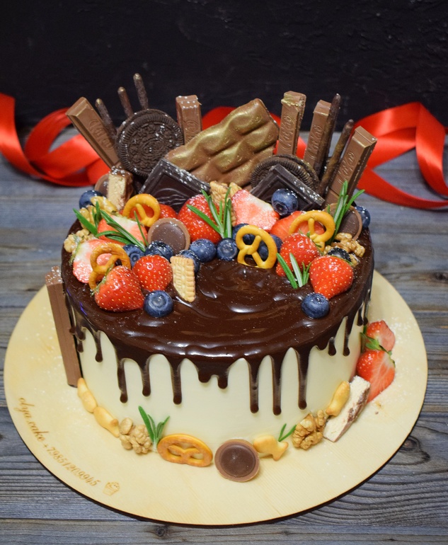 Украшение тортов кремом,шоколадом, фруктамиСложно фотографировать после 16 часов,🤔 очень мало света... А до этого времени не всегда получается 🤗..