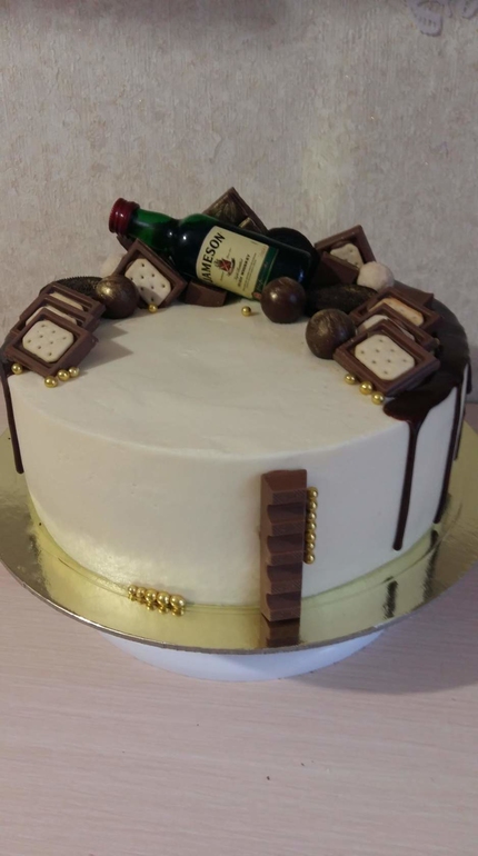 Украшение тортов кремом,шоколадом, фруктамиОбожаю эти малюсенькие бутылочки) и подобный дизайн мужских тортов. Внутри МД с клубничкой