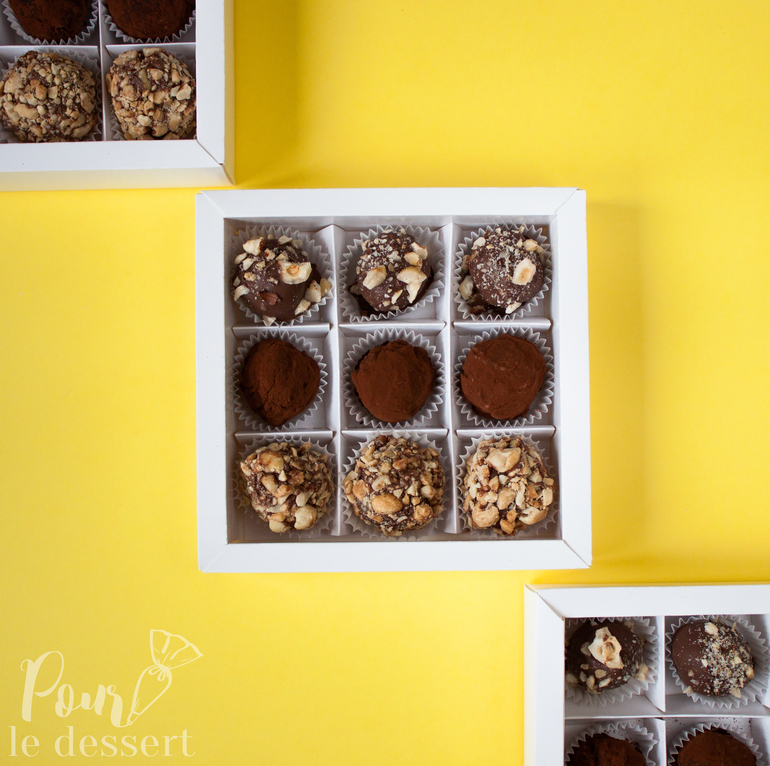 По фото где кто конечно не разберешь, скажу так, мои любимчики трюфели с сыром с голубой плесенью, арахисовые и классические. Очень хочу попробовать с чаем матча, но стоит он космически, надо заказывать на iherb уже скорее)