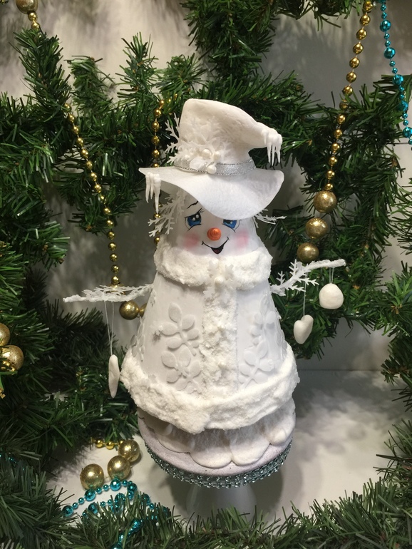 очень необычный, невероятно нежный пряничный снеговик. Упакован будет в прозрачную тубу. Высота 20 см.Раскачивается словно колокольчик.