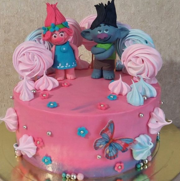 Украшение тортов кремом,шоколадом, фруктамиДобрый вечер, девочки! Теперь и у меня есть тортик с троллями) Начинка - Шоколад-вишня, фигурки - сахарная мастика.