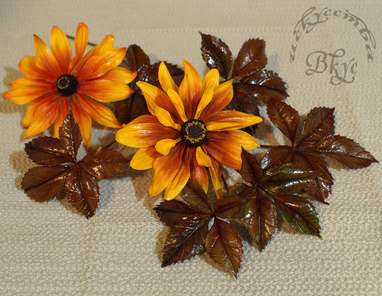 Доброе утро, дорогие друзья, коллеги! Мой подробный МК по изготовлению сахарной рудбекии, листьев дикого винограда, фантазийных цветочков вы можете найти в журнале Тортдеко №5(33) декабрь 2017. Все эти цветы и не только будут участвовать в оформлении свадебного тОрта. Так же будет очень много материала с подробным описанием процесса и фото сборки и декорированию этого тОрта. Но о нём чуть позже))