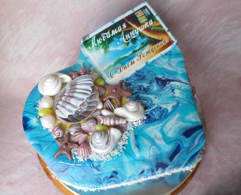 "Молочная девочка" в зеркальной глазури, декор сахарная мастика