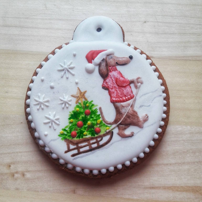 Отличные пряники! Очень понравилась первая такса и ёлка ) какой размер у круглого пряника? И как ты наносишь глазурь? Кондитерский шприц, кисти? Ничего в этом не понимаю, но хочу технологические азы освоить.