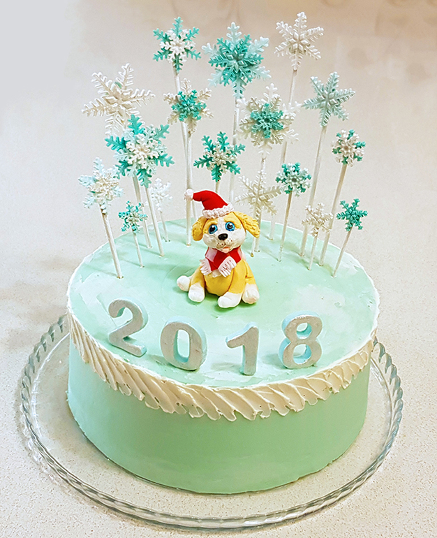 Украшение тортов кремом,шоколадом, фруктамиПоздравляю всех девочек-тортоделочек с Новым годом и Рождеством! Пусть в этом году сбудутся ваши самые сладкие мечты☺️!! А это наш праздничный тортик с собачкой и кучей снежинок. Внутри наполеон с кремом пломбир.