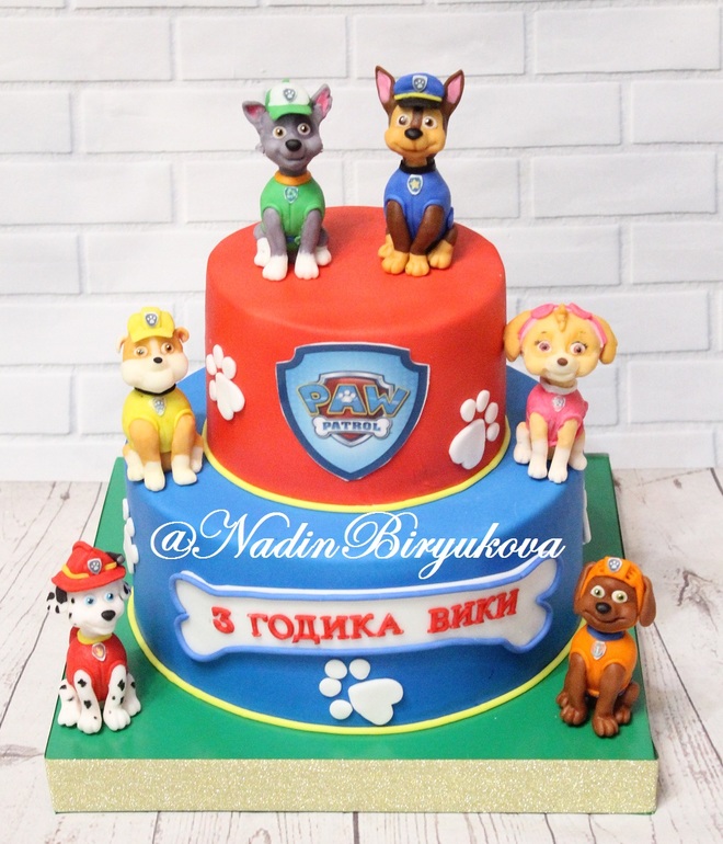 Торты детскиеКак меня спросила коллега про надпись, я делала строго по присланному образцу, поэтому как вы пишите в письме так я и делаю, никаких исправлений ))) Тут были учтены все пожелания заказчика и сам дизайн и собачки...