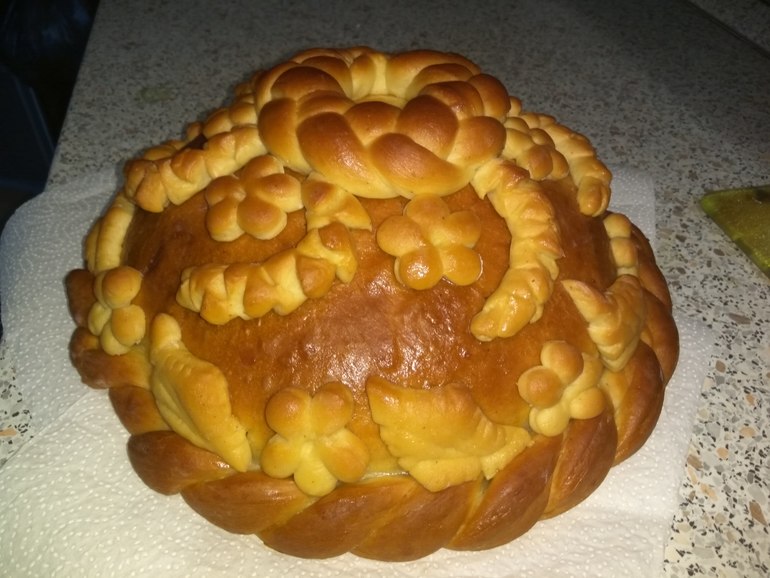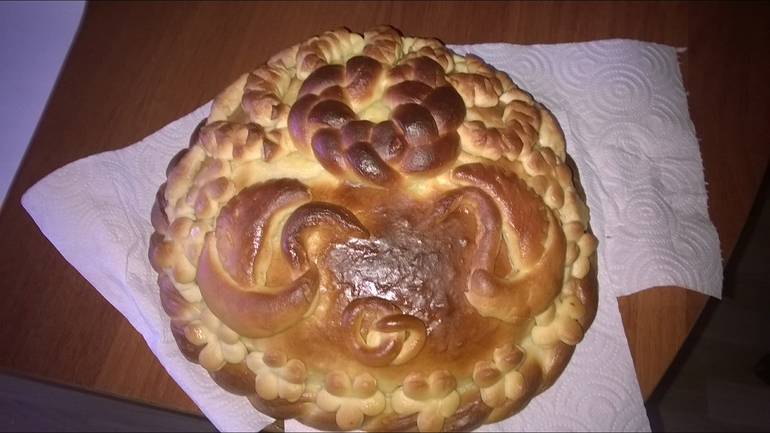 - Смешать ингредиенты. Дрожжи необходимо развести в 1/2 стакана молока с добавленной туда 1 ч. л. сахара. В отдельной посудине растереть оставшийся сахар c желтками и влить туда получившуюся дрожжевую массу. В большую миску, где будет готовиться тесто, всыпать горкой муку, сделать в центре углубление. В это углубление влить массу, полученную до этого, а также масло, взбитые в пену белки, всыпать соль. Все тщательно перемешать. Замесить тесто. Для этого посыпать стол мукой, выложить туда тесто и месить его руками. Время от времени подсыпать муку. Месить до тех пор, пока тесто не будет достаточно гладким и не перестанет прилипать к рукам (20-30 минут). Подождать, когда тесто «дойдет».