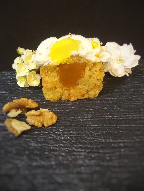 Точнее морковно-ореховые, с корицей, и мускатным орехом. Внутри спряталась карамельно-апельсиновая помадка,а. Сверху окутывает сливочно-творожная шапочка😍😍😍