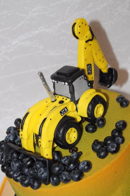 Уже не первый такой торт с экскаватором и ягодами) покрытие велюр.