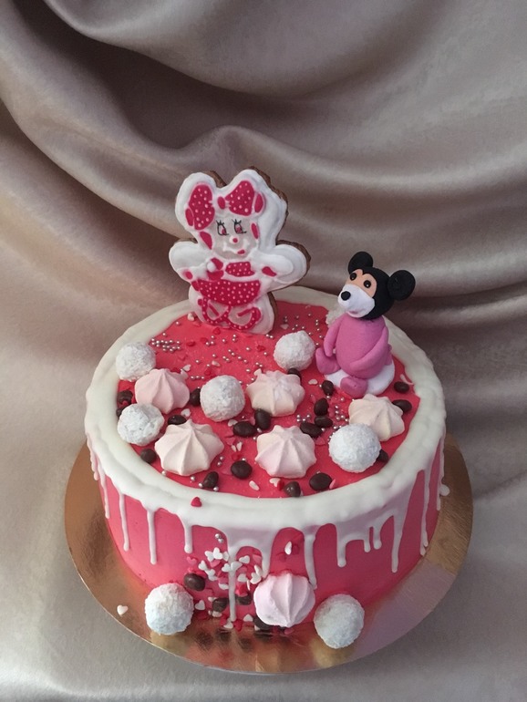 Ну, вот так если честно, без обид, то Микки Маус, конечно, больше похож то ли на медведя, то ли ещё на кого-то, но точно не на себя... А торт симпатичный)