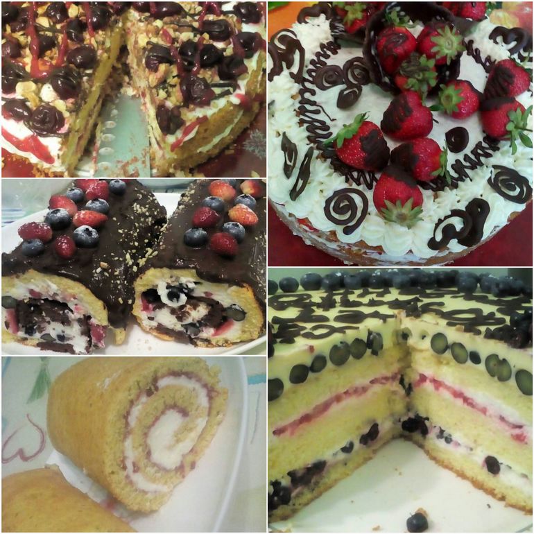 у меня всегда одинаковые пропорции для любого бисквита, никогда ничего отдельно не взбиваю отдельно. Всегда все вместе. (на всех фотках - одинаковое тесто)