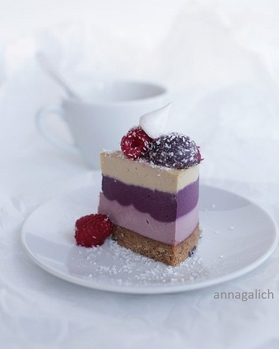 🍰 Вкус: корж миндальный, прослойки с кремом: мандарин, смородина, малина. 🌱Торт постный (веганский), т.е. без всего животного и сыроедческий (без выпечки). Украшение: веганские меренги, конфеты, свежие малина и клюква. Разрезик под катом.