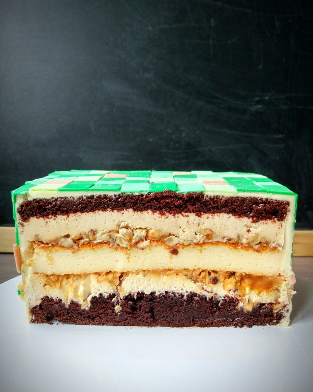 Второй Майнкрафт, который в начале поста, был уже на 4 кг. Мой первый такой большой торт. В начинке была морковно-карамельная начинка, вот эта: