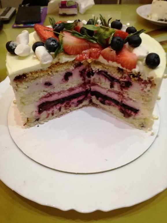 Малыш с ягодным сердечком и его разрез: малина-черника/йогурт