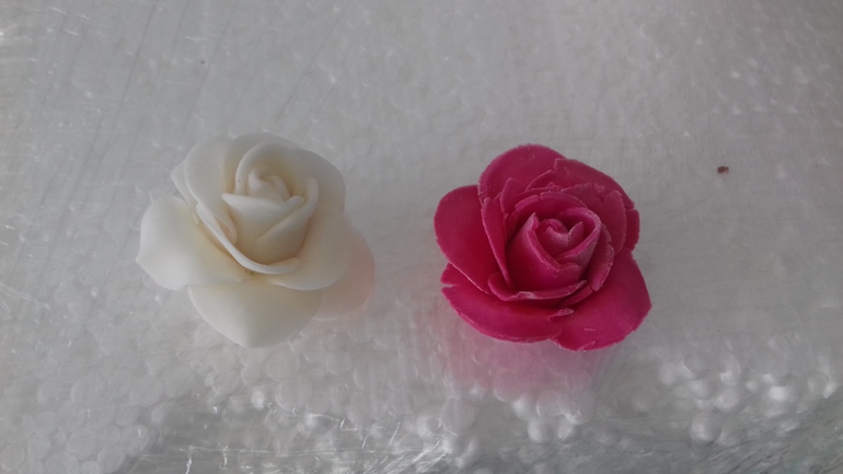 ВОПРОСЫ кондитеровВсех с первым днем весны!!!) Девочки, поделитесь опытом? Я всегда делала мастику из маршмеллоу, но многие берут покупную и я решила попробовать! Белая роза из моей обычной мастики, розовая из ТопДекор. Почему розовая потрескалась? Крахмалом забила? Долго возилась?